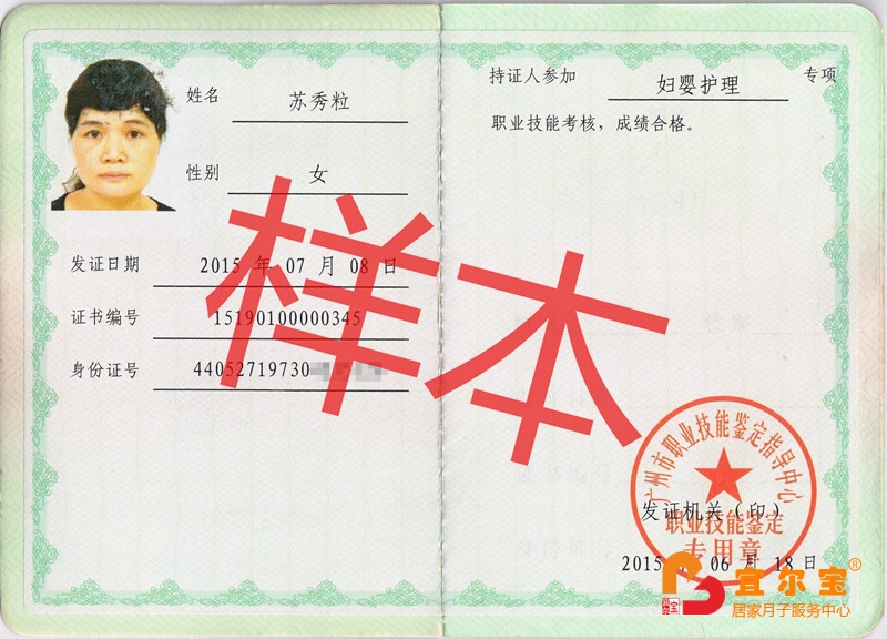 月嫂證(家庭婦嬰護(hù)理員資格證書)